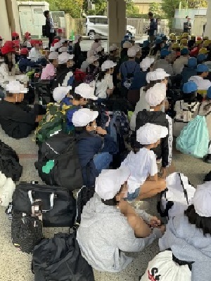予定通り、17時30分ごろにバスで学校に帰ってくることができました。事前の天気予報で、雨天が心配された修学旅行でしたが、大雨に降られることもなく、予定されていた全行程を、全て行うことができました。子ども達は、楽しい思い出を胸に、家に帰っていくことができました。